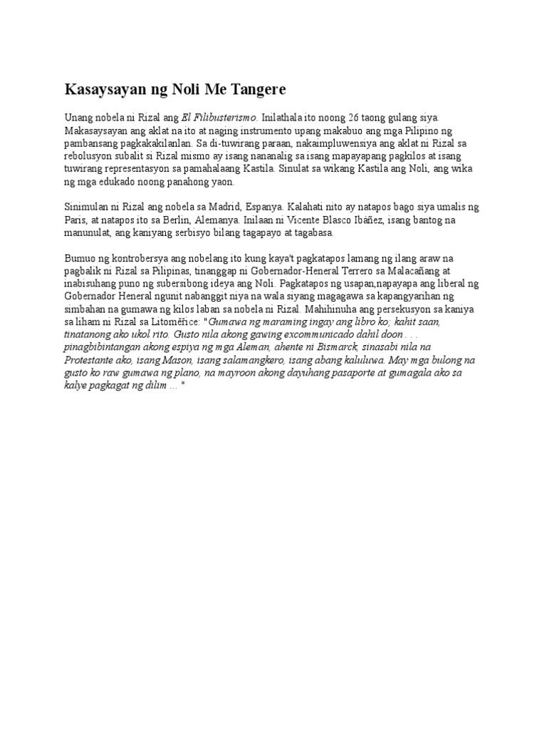 Mapapansin sa nobela na mas kilala ng mamamayan ang Kura Paroko kaysa sa Gobernador. Mas madalas itong tinatawag na Noli. Ang mga naging karanasan ni Jose Rizal habang isinusulat ang Nobelang elfilibusterismo Ang Nobelang ito ay iniaalay sa tatlong paring martir na sina Mariano Gomez Jose Burgos Jacinto Zamora sinimulang sinulat ni Rizal ang El Filibusterismo noong Oktobre 1887 Una siyang nagsulat sa CalambaLaguna at itinuloy niya ang pagsusulat sa London.