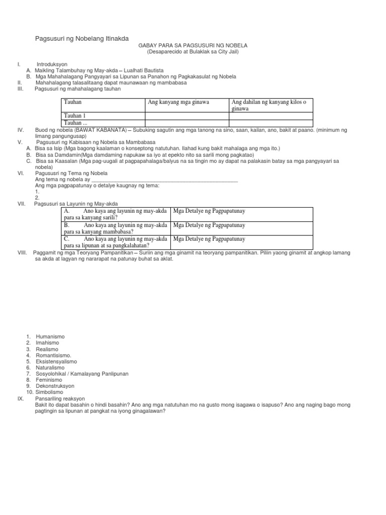 Pagsusuri Ng Nobelang Itinakda Pdf