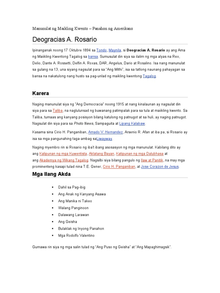 Manunulat Ng Maikling Kwento Pdf