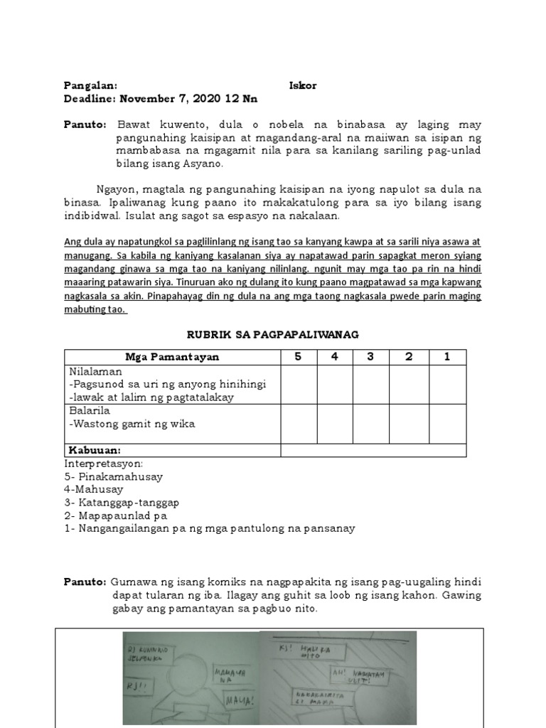 372275957 Rubric Pagsulat Ng Sanaysay Filipino V Doc. IA2 Pagbibigay ng pamantayan sa pagbuo ng timeline. Ang nakuha nila.